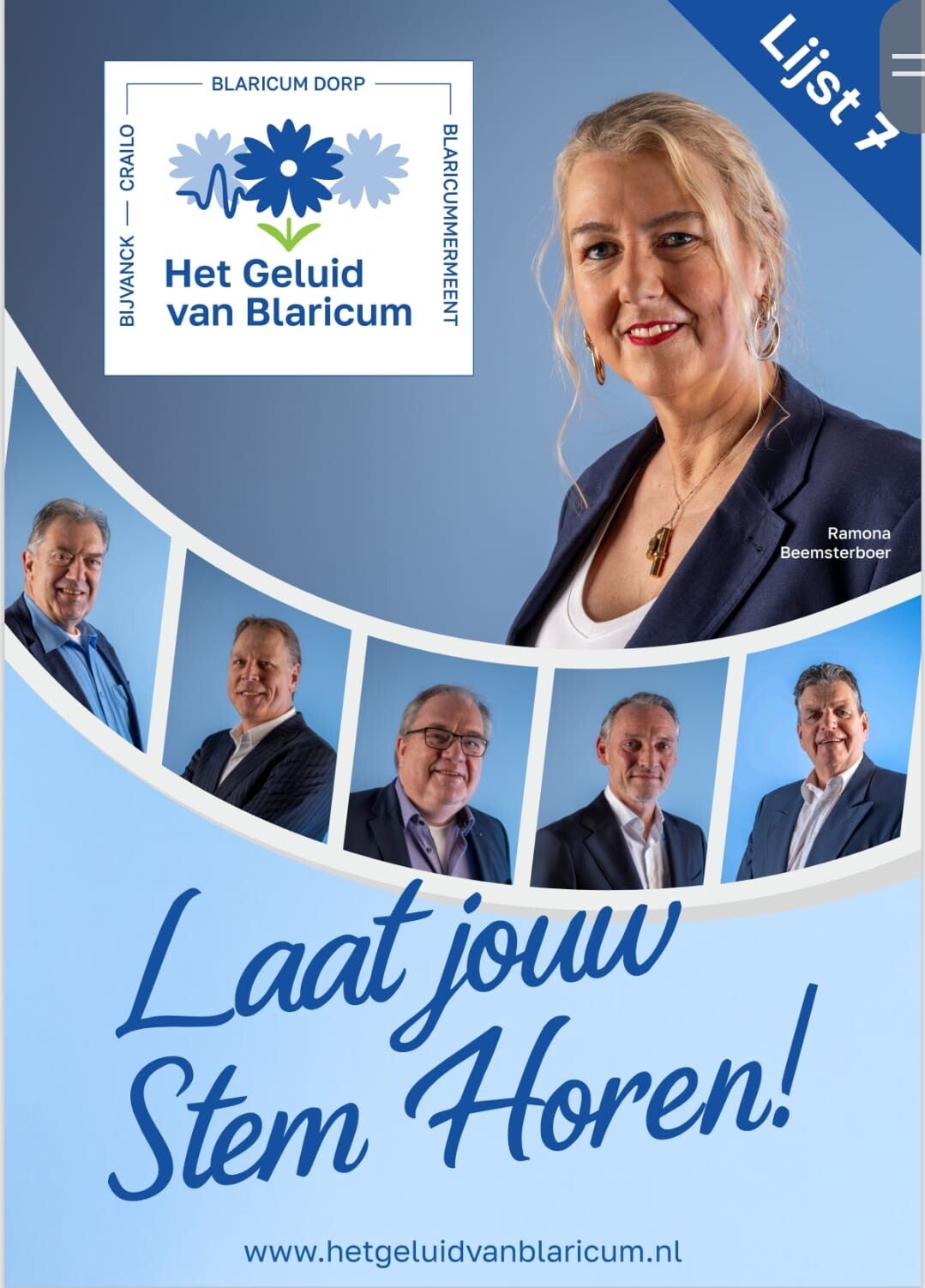 Het Geluid van Blaricum is een nieuwe politieke partij, maar met veel politieke ervaring. Ontstaan uit liefde voor ons dorp. Wij willen de inwoners van Blaricum een sterkere stem geven en samen bouwen aan een positieve toekomst.